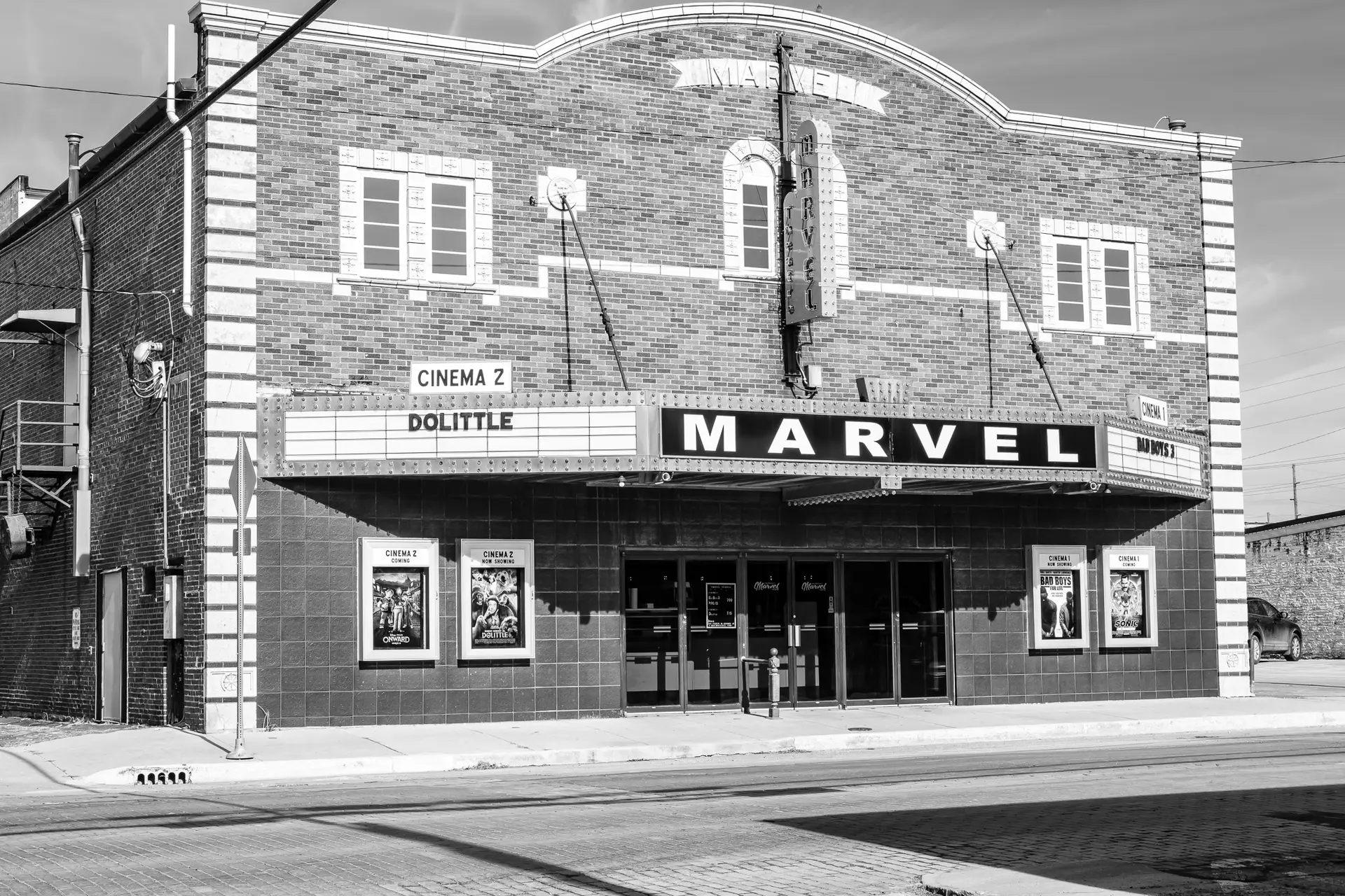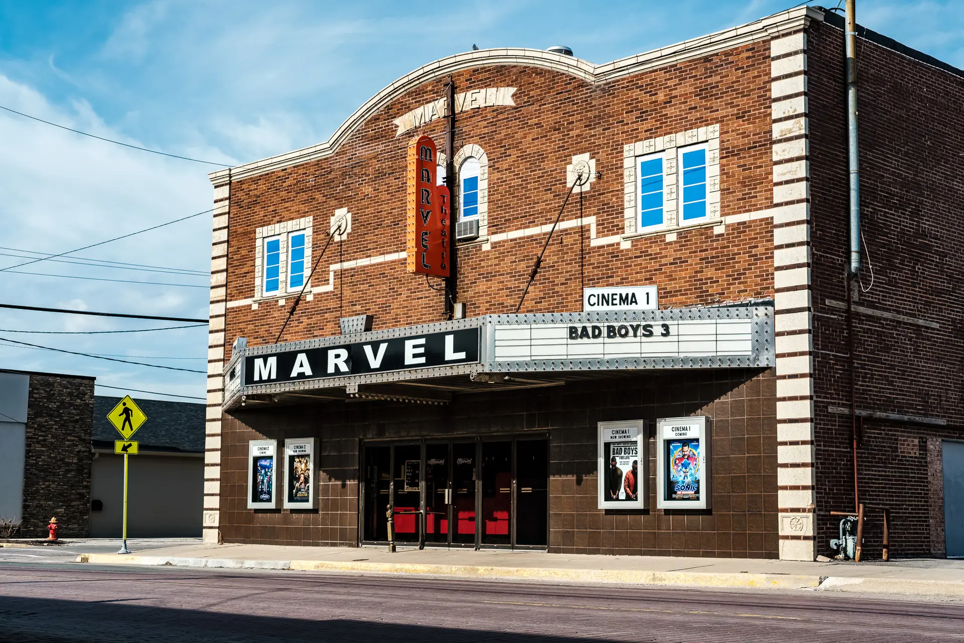 Rebuilt in 1928 after a devastating fire, the Marvel added a balcony and modern comforts. Nearly a century later, it’s still showing first-run films. Photographed February 3, 2020 © RJL Creative LLC. Use without permission is strictly prohibited.